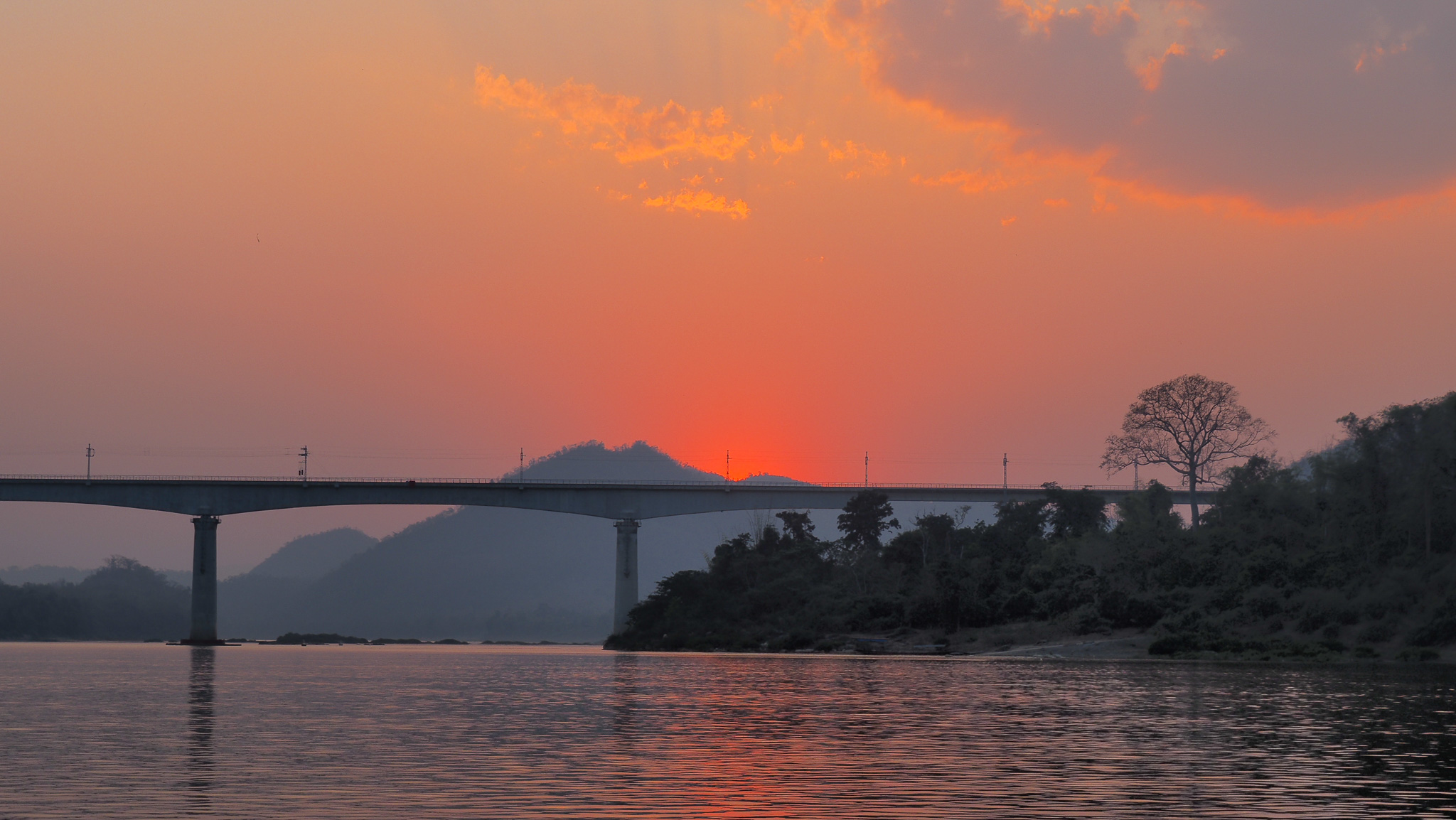 As we were sailing into Luang Prabang we had a really pretty sunset. This is the season when farmers burn their fields. Consequently, there is a lot of smoke in the air, which helps with the colors of the sunset.